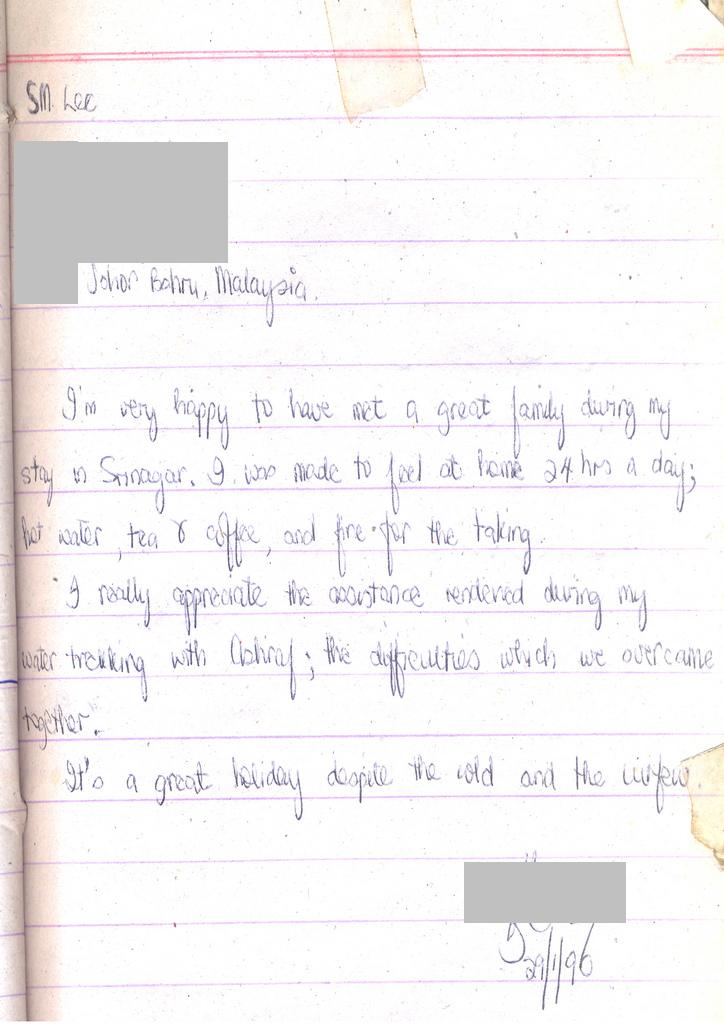 I’m very happy to have met a great family during my stay in Srinagar. I was made to feel at home 24 hours a day; hot water, tea and coffe and ??? for the taking.