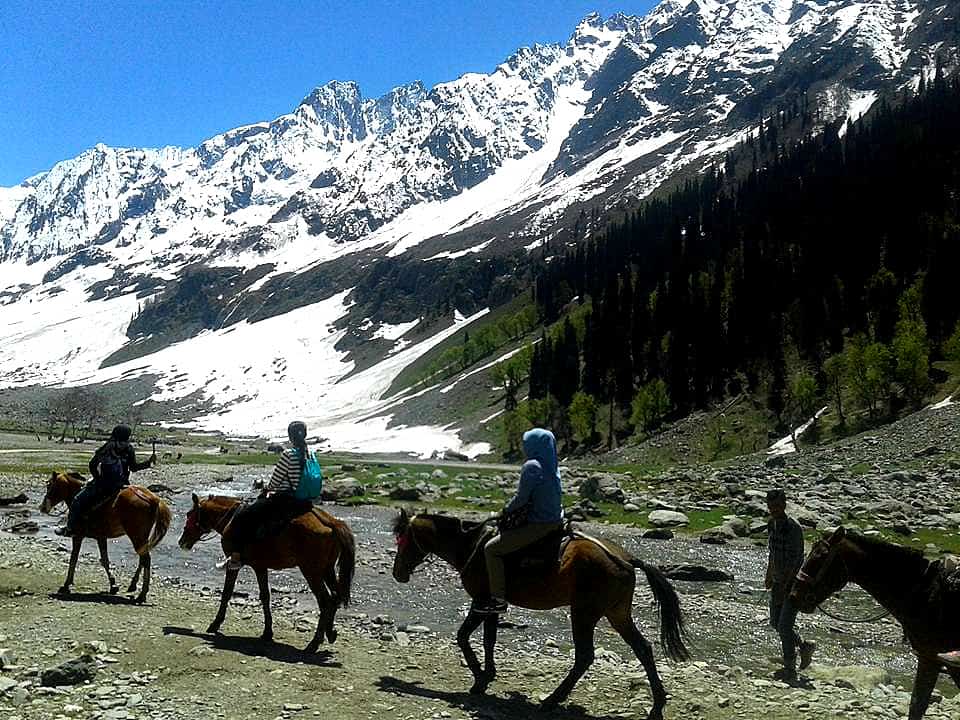 Itinerary: Start from Srinagar tourists reception center at 7.am. drive by car up to Aru valley 4 hours , start hike up to green top ,via kotpatri valley ,sightseeing around and back Aru ,drive to Srinagar 8.p.m. reach. Total trek 5 hours , Cost 14000 rupees for couple .